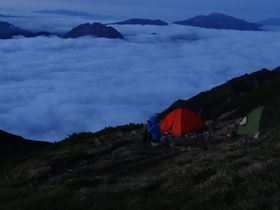 でもこの雲海を見ると・・・やはりテン泊の方が良かったかな?!雲海見ながらのモーニングコーヒー!!!