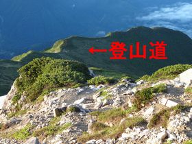 今回の山旅で、笠ヶ岳を急きょ付けくわえたのは、この笠ヶ岳単独で登るにはこの辛い笠新道を登らないといけないため! 今回、双六から登っておいて本当に良かった!