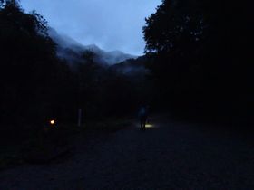 朝4:45、霧雨の中駐車場を出発。