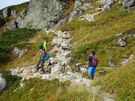 3番目を歩くのが、今回さや吉を呼んでくれたおーちゃん。「自分がいちばん足を引っ張る」なんて言っていたけれど、そんなことはありません。傍から見ていて、個性豊かな男三兄弟にさや吉は引っ張ってもらいました。 |