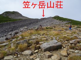 2014年黒部五郎岳の帰りに笠ヶ岳を登ったときは、ソロ登山でガスの中全く山荘が見えず不安を感じながら歩いたのを思い出す・・・あのときはガスと体力低下でテント泊の気力がなく、小屋泊まりしました。