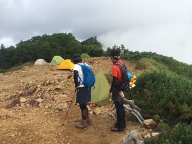 「今日はお盆休みのため、端から詰めてテントを張って下さいね。」と山小屋のスタッフに言われ、キツキツでテントを張った私たち。でもこの日より翌日の方がテントの数は多かったです。