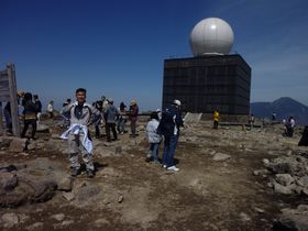 あれ、もう車山山頂に着いちゃった!右にあるのは、気象レーダー観測所です。ここだと登山ウェアは浮いているかも・・・