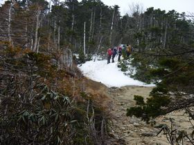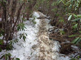 尾根の吹きさらしのところは、さすがに雪は溶けています。 ここに雪が残っていたら、片側は崖になっているので、かなり怖いです〜