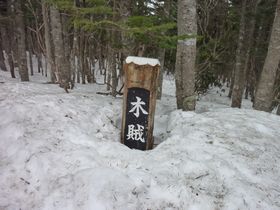 甲武信岳手前の木賊(トクサ)山です。 標識が雪に埋もれています。 ここまで残雪の残る登山をしたことがないので感動です。