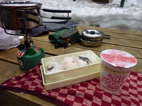 前日、さや吉は会社が休みだったので、今回は手作りのおにぎり持参。