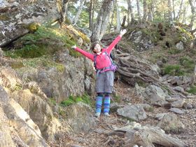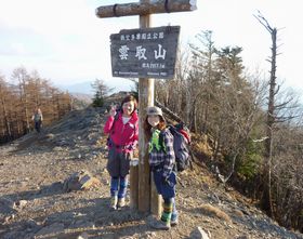 今日のお昼地点、七ツ石山山頂に到着。二人お揃いのレッグウォーマーは、人目を引いたようです。