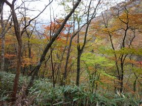 紅葉がきれいな1200m地点に下ってきました。 7:45