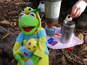 今回、テントは私が持つかわりに、あゆみちゃんにガスストーブを持って来てもらいました。ジェットボイルはやっぱり早いね!しかし山ごはんを作るなら別に鍋を持たないと? 欲しいけれど、荷物が増えるなぁ・・・