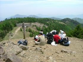 山頂には人がたくさんいました。ちょっと早い昼飯でお腹を満たす。