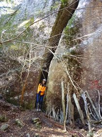 行きに通った桃太郎岩、割れ目があるから桃太郎岩なのね〜 とりあえず、挟まってみた(笑)