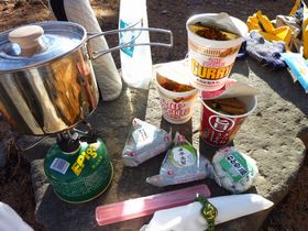 これから登ってくる登山客も結構いました。雪もあって道が狭いため、渋滞中。みなさん今夜は山小屋に泊まるんでしょうか?