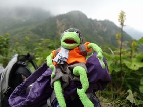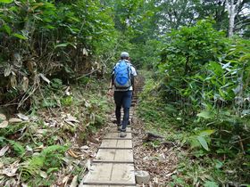 たらんたんも一緒。岩場あり、木道あり。木道は「平成○年施工」と書いてあり、ここ2〜3年のもの。