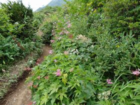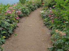 コース内にお花畑という地点が。看板を過ぎると、この花たちが!!かなりテンションあがります。たらんたんはあまり興味がないようで、サクサク登っていきます。