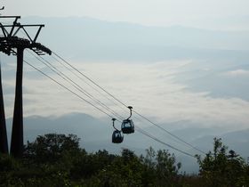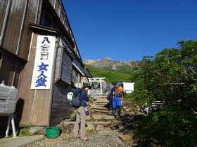 ロープウェイから一ノ俣行場山荘まではウッドチップの歩きやすい登山道。その後は登山道らしくなって、女人堂に到着。ここから一気に見晴らしがよくなります。