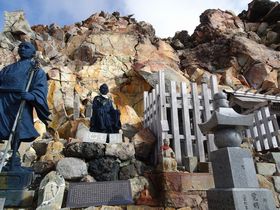 2014年9月の噴火の影響で、傾いている灯篭があったり、新しく設置されたものがあったり・・・古いものは火山灰から掘り起こされたものなんだろうなぁ。。。