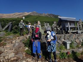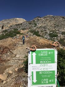 2019年8月3日 一ノ俣行場山荘(6:45)〜女人堂(7:20)〜御嶽山山頂(9:00)〜二の池山荘(10:00)〜ロープウェイ飯森駅(12:10)