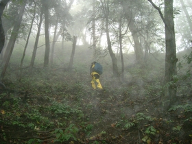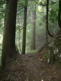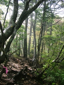 10:40 霧の中の林道。かぐや姫が出てきそう(竹林じゃないけど・・・)