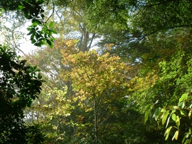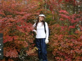 13:05 この辺りはすっかり紅葉です。標高は○メートルぐらいです。紅葉に見とれるたらんたん。