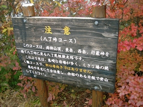 13:21 頂上の向こう側「八丁峠コース」の説明です。このコースは赤字で「初心者向きではありません」と書いてあります。どんなところなのでしょう?興味津々。天気がいいときにまた来ようね。