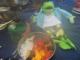 昼食のラーメンを食べ、テントをたたんで下山。14:00着。