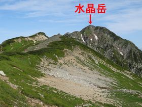 ここワリモ北分岐で、ザックをデポして水晶岳に向かいます。