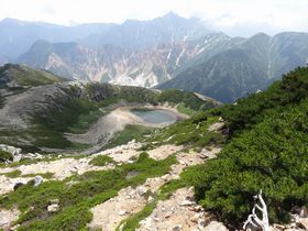 鏡平山荘裏の鏡池。