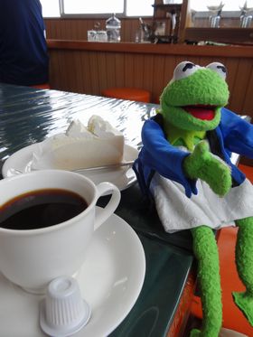 ここは展望レストランでケーキセットが有名。1000円也。Tくんもお茶に付き合ってくれました。ショコラ、チーズクリーム、抹茶等ありましたが、チーズクリームを選択。 サイフォン式のコーヒーと共に。槍を見ながら、優雅にケーキとコーヒー。至福なひとときです♪ あ、オムライスもおいしそうでした。