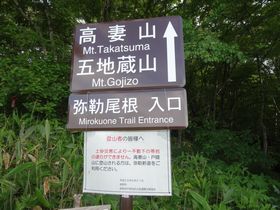 百名山は登山道に木製の階段がなくても、砂袋で階段状にしたり、もう少し歩きやすいのですが、この高妻山は下りが長く、 樹林帯も足の置き場が安定していないせいか、体力を消耗するコースでした・・・ 昨日の雨飾山で疲れが溜まっているのか、膝の踏ん張りが利かずなかなかハードな山旅でした。雨が降らなかったものの、 もう少し見晴らしが良ければ、テンションが維持できたのかもだけど・・・