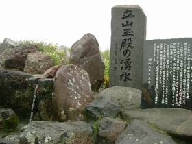 立山玉殿の湧水で水を汲み、まずは立山(雄山)に出発!