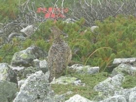 カエルのような鳴き声の正体がわかりました!特別天然記念物「雷鳥」がいました。しかも2匹!霧で景色が見えずらい登山でしたが、雷鳥に元気をもらいました。