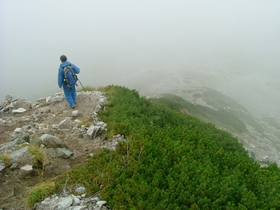 写真の通り、霧で回りは何も見えず、富士ノ折立には立ち寄らず、剱岳方面を目指します。
