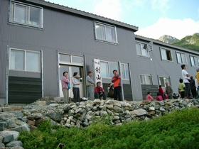剱山荘到着です。誰かのHPで4ツ星ランクでした。なんと、こんな山奥なのにシャワーあり。