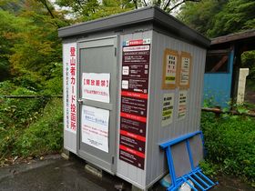登山口の向こうに、登山届投函所とおトイレが。この先、光岳小屋までおトイレはありません・・・済ませておいた方が無難です。
