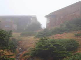 ガスって全く見えなかったけれど、やっと小屋が見えてきた!