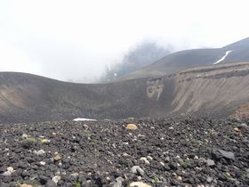 左手に昭和噴火口?広いです。でもやっぱりガスっていて、周りがよく見えません。