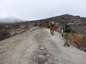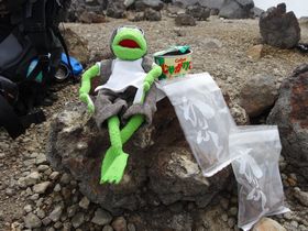 望岳台から少し歩いてこの避難小屋が見えたけれど、なかなか着かず・・・活火山の十勝岳、歩きにくいせいか、少しの距離しか歩いていないのに、すごく疲れる・・・