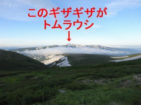 小屋の前からトムラウシ方向。雲海が見えます。