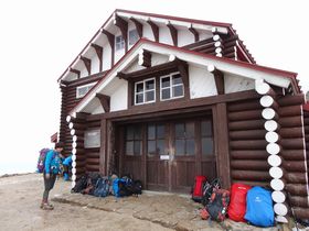燕山荘受付。 今日は3連休の中日、天気が悪いせいか、5組布団がある部屋(部屋っていっても二段ベットの空間だから普通に立てないけど)、もりぞう、Sさん、女子3人でした。快適、快適。堀崎くんも一緒の部屋が良かった?でも相部屋だとお互い着替えが面倒だからね・・・