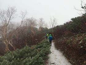 日本三大急登+天気が悪いので、来る前はかなり緊張していましたが、第一ベンチ、第二ベンチ・・・休憩ポイントがちょうどいい感覚で設置され、登山道も整備されていて、本当に歩きやすい!