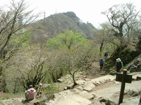 8:27 最初は結構斜度のきつい登りです。しかも日があたる・・・夏だったら汗だくでしょう。この登山道の脇に、つつじがたくさんありました。もう少ししたら満開なんだろうなぁ・・