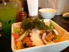 3日目。 沖縄ちゅら海水族館へ。 敷地内は植物園やビーチもあり、整備された立派な建物でした。世界一大きいアクリルパネルを持つ大水槽には、ジンベイザメやエイが悠々泳いでいました。 通常のイルカショーの後、イルカ主役の映画撮影があり、観客として撮影に参加しました。ADの方が帰ろうとする客を一生懸命引き止める姿はとても印象的。華やかな世界の裏にジミ〜なお仕事もあるのね。 夜は、ヤフーのぐるなびでお店検索。今夜も沖縄料理を満喫。なんだかグルメHPになってます(笑)