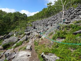 山頂を過ぎてしばらく下ると、ナキウサギ保護地区。